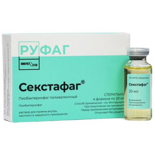Eubacteria polyvalent (Sextape) has the ability to specifically lyse relevant fagu microorganisms (Staphylococcus, streptococci, pathogenic intestinal bacteria Pseudomonas), Protea (of mirabilis and vulgaris), Klebsiella pneumonia.